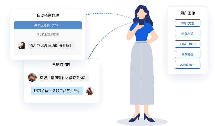 客户信息监管严格,现有添加客户微信的场景不满足监管要求 消息群发任务次数受到限制,不满足运营需求